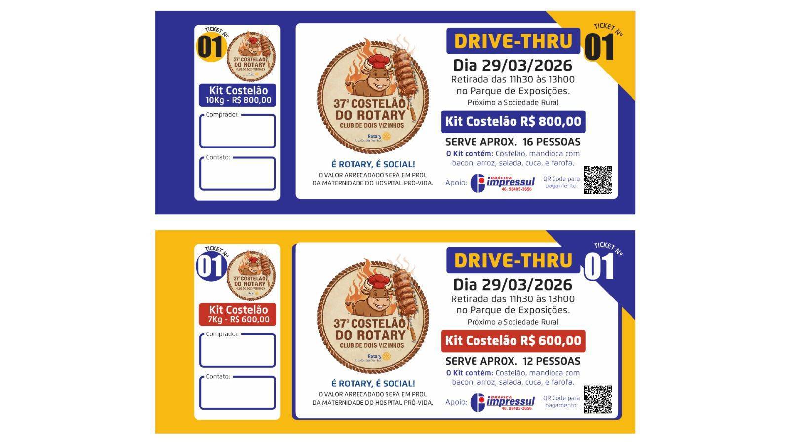 Mais uma edição de um dos eventos gastronômicos mais aguardados de Dois Vizinhos já tem data marcada! O 37º Costelão do Rotary, promovido pelo Rotary Club de Dois Vizinhos, será realizado no dia 29 de março de 2026, em formato drive-thru, com retirada no Parque de Exposições, próximo à Sociedade Rural, das 11h30 às 13h.